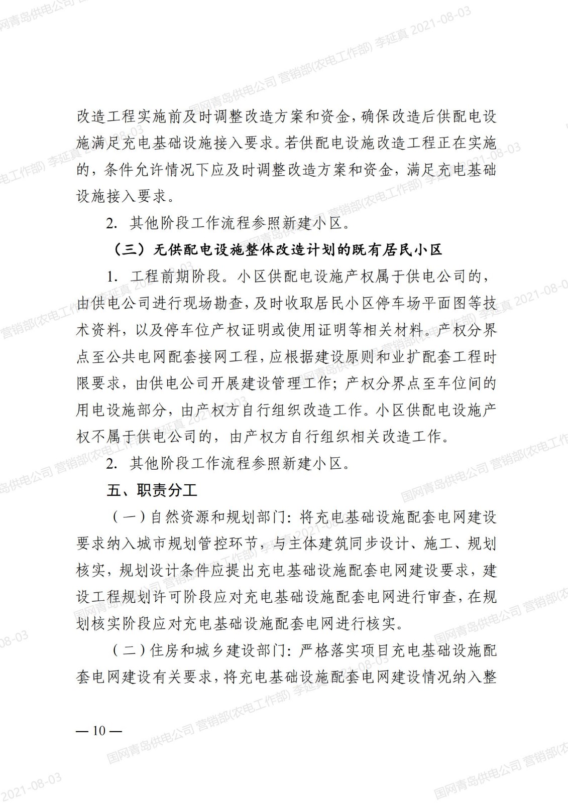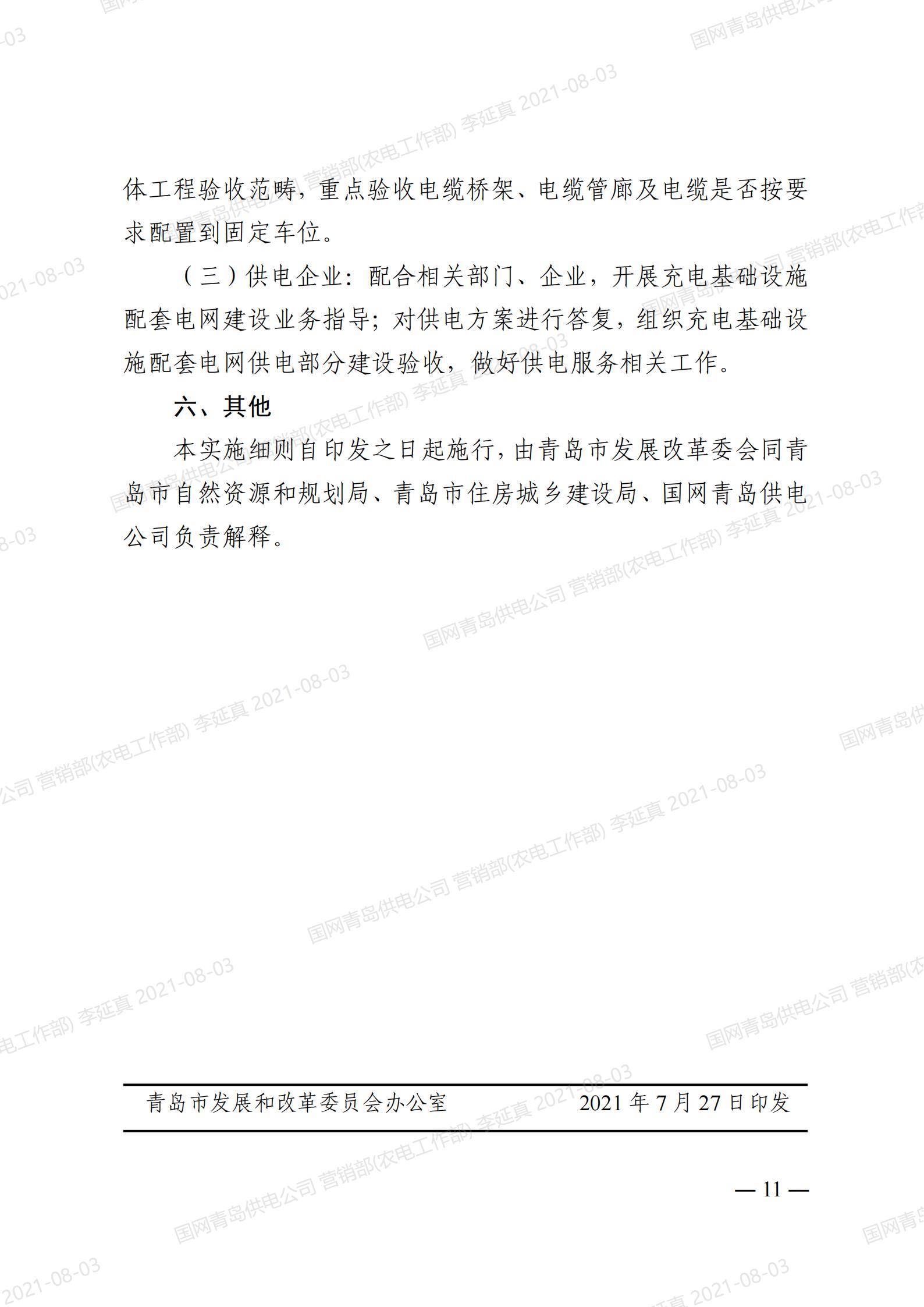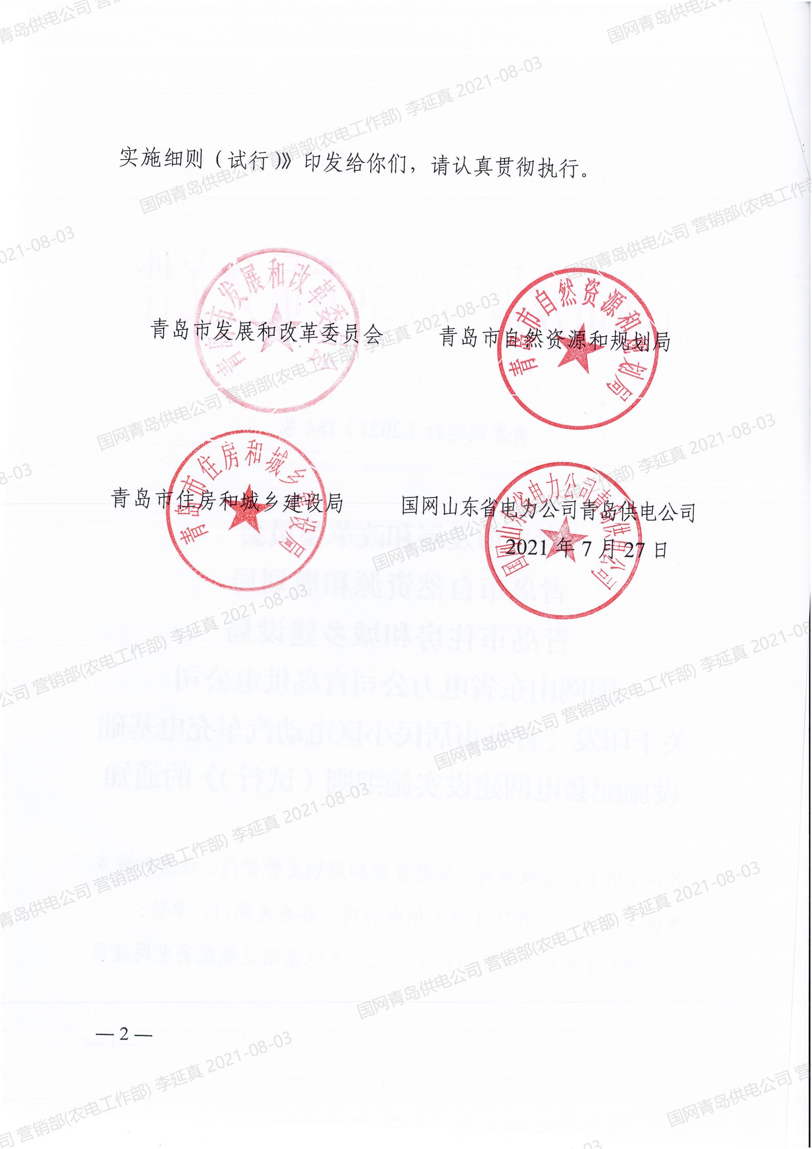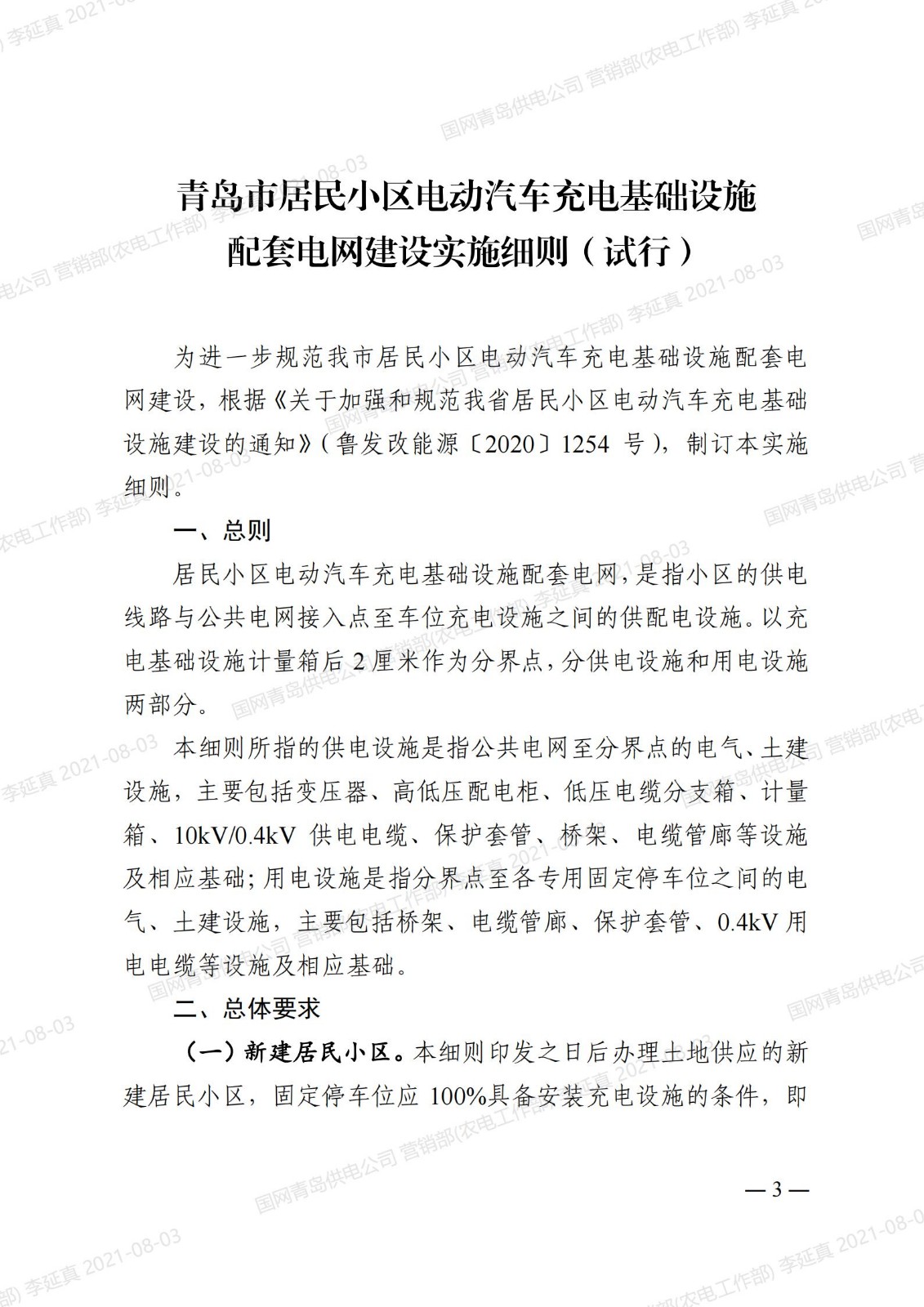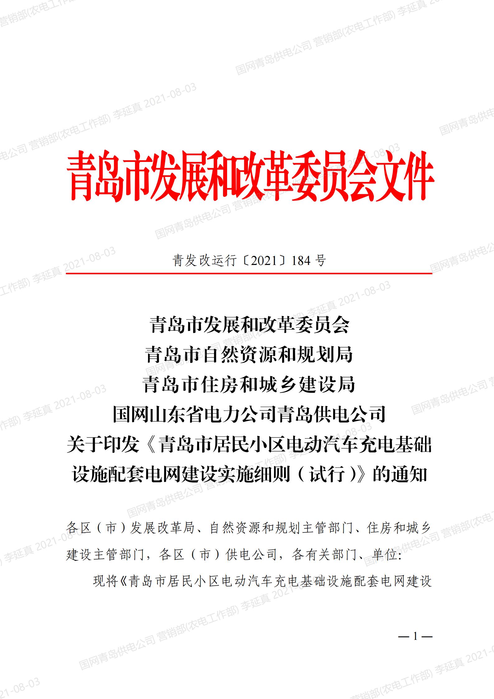 青岛市居民小区电动汽车充电桩基础设施配套电网建设实施细则(试行)